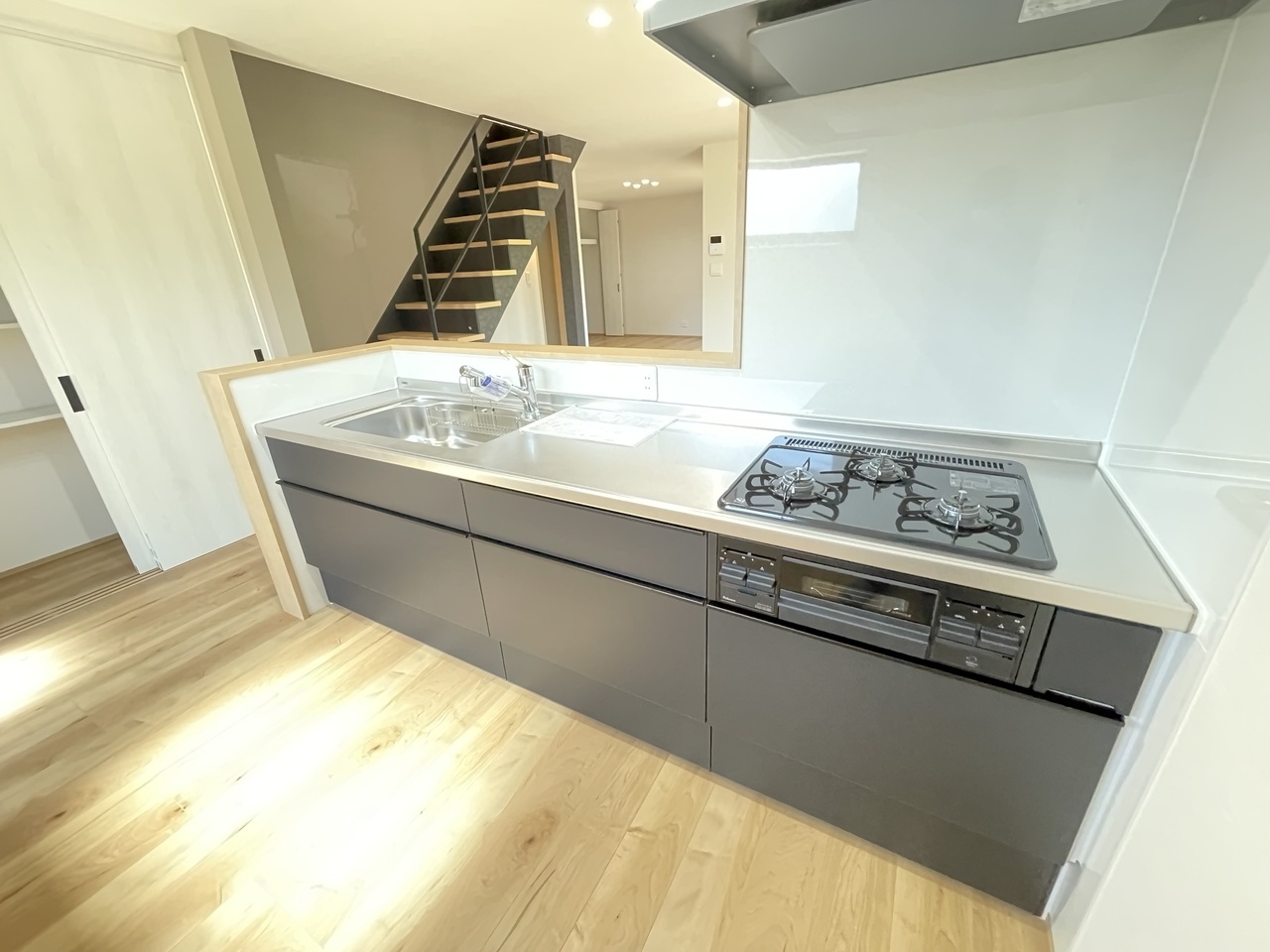 アイアン手摺の階段が印象的な、開放的なLDK